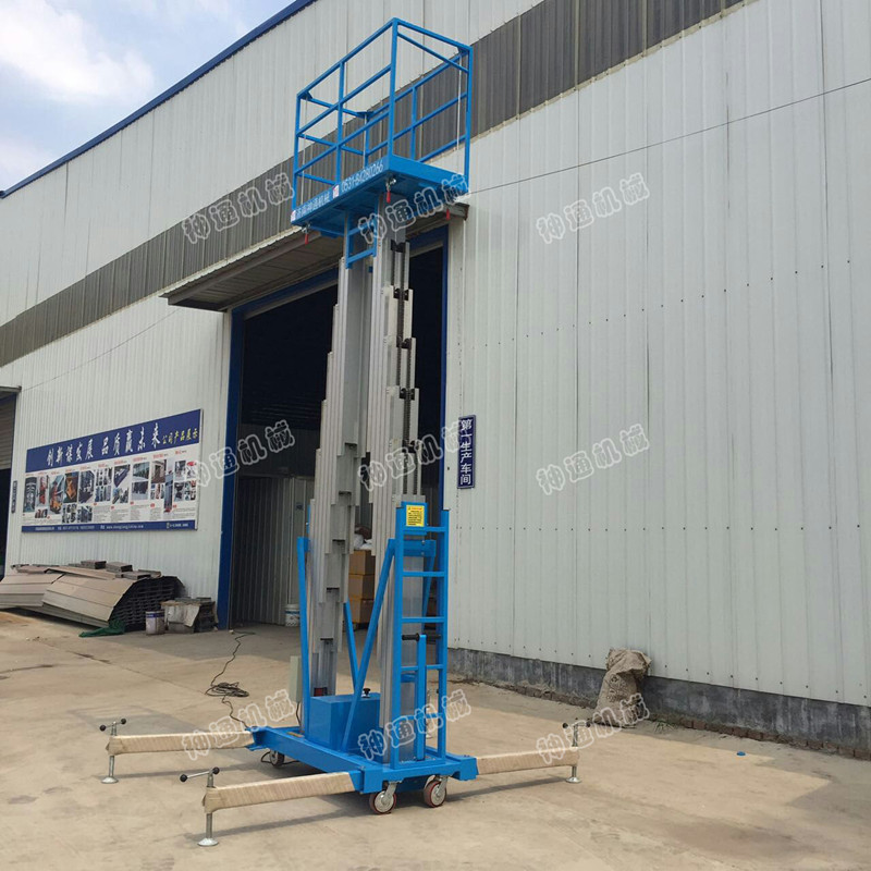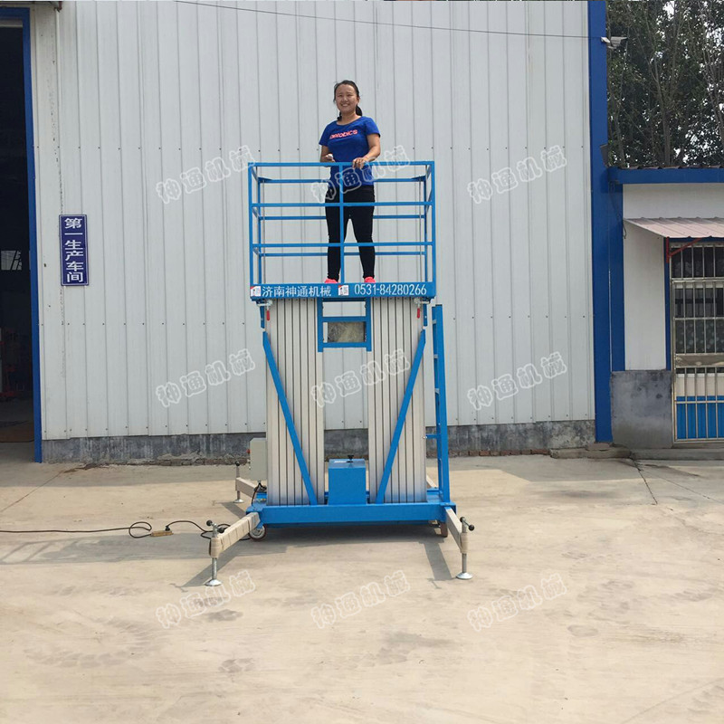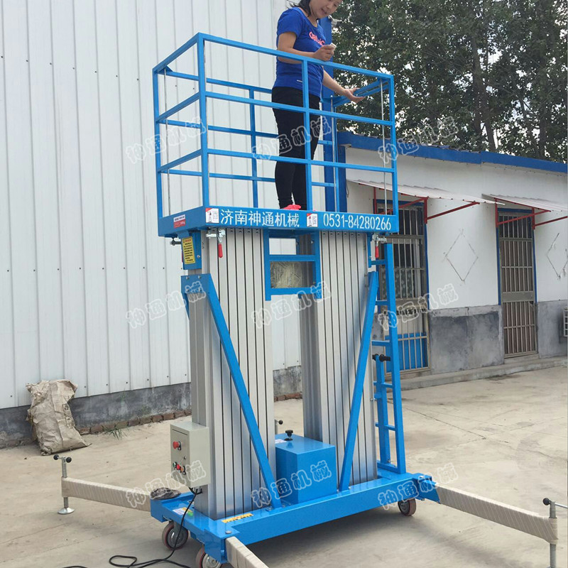 產(chǎn)品介紹:鋁合金電動升降機(jī),采用高強(qiáng)度優(yōu)質(zhì)鋁合金材料,具有造型美觀、體積小、重量輕、運轉(zhuǎn)靈活,推行方便。升降平穩(wěn)、安全可靠等優(yōu)點。SJYL三柱鋁合金液壓升降平臺能穿越一般門廳,可隨意進(jìn)出電梯,能在極小的空間內(nèi)發(fā)揮最高的舉升能力。使單人高空作業(yè)變得輕而易舉。且耗電少、無污染、工作時不傷地面,可用于貼墻作業(yè)及探出作業(yè)。鋁合金液壓升降平臺分為:單柱、雙柱、三柱和四柱等。